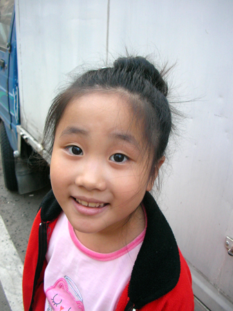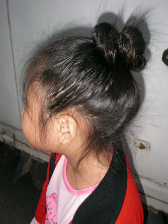 這是規仔可愛的姪女柔柔 (先幫柔綁一個規仔的固定造型道姑頭)