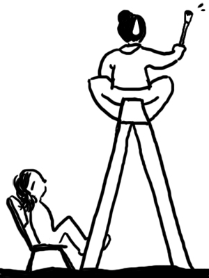 坐在 A 字梯上畫圖,還真是怕怕的...(=_=)...原本是站在椅子上,但差點摔個狗吃屎,還是換 A 字梯吧...@@