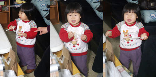 只要對小佳慧說:「看這邊!」...她就會做鬼臉喔XD...屢試不爽,笑死我了(;;)