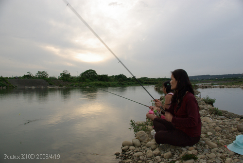 這天家裡說好要釣魚,但規仔想玩 Pentax K10D,所以就變成大家釣魚、規仔拍照的局面...(^///^)