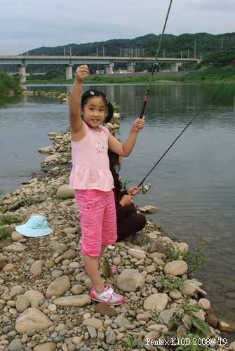 看柔仔那麼無聊,釣竿甘脆借給柔仔去玩,柔仔很開心地跑到老媽身邊釣魚去了...(^^)