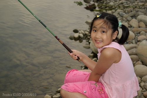 重拾相機的規仔決定來一張柔仔近拍...(^^)...看釣竿失而復得的柔仔笑得多開心啊...