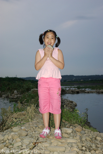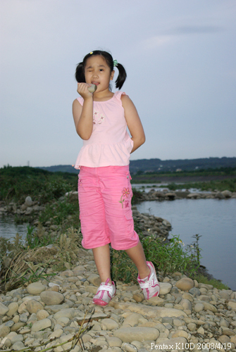 叫來讓我拍幾張照片好了~(^^)~結果從頭到尾只會玩石頭...囧...也罷~就拍「玩石頭的天真小朋友」吧!!!