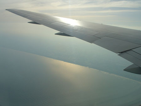 三小時候抵達日本...從照片可以看出日本的海岸線竟然是平的...真詭異...不知是否是填海而成...