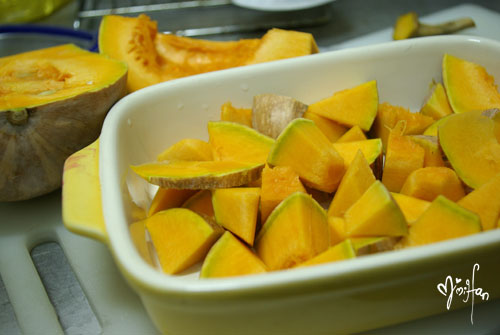 1. 南瓜:二人份的話半顆就夠了,愛吃南瓜的人要放一顆也無妨...(^^)