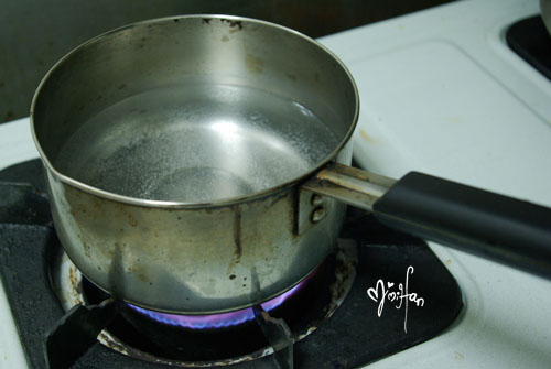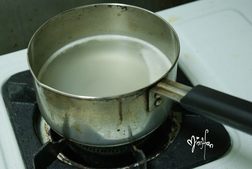步驟三:鍋子(C)裝入水(2)開火加熱直到水滾