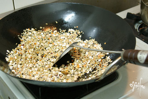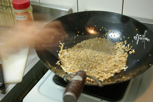 每一顆米都要感覺有沾到油,如果油太少就加一些,但要小心別放太多...(^^)