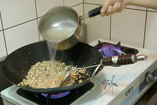 稍為炒一下 (下圖的湯加得不夠多,一定要蓋過米才行)