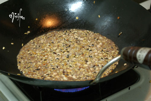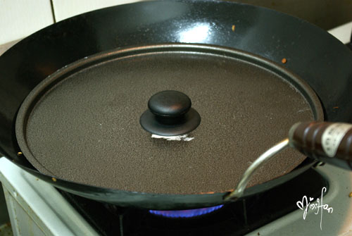蓋上蓋子悶煮...這時最容易黏鍋而焦掉,所以要不時翻炒...囧