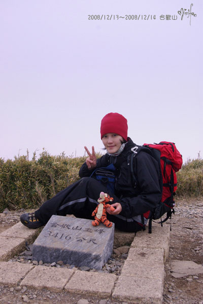 規仔看起來好疲倦...當然了,12/12 晚上失眠,12/13 晚上只睡不到六小時就來攻頂...(=_=)