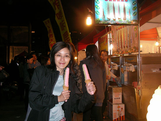 雙淇淋老伯正準備打烊...規仔和發董一時興起買了二支草莓抹茶...