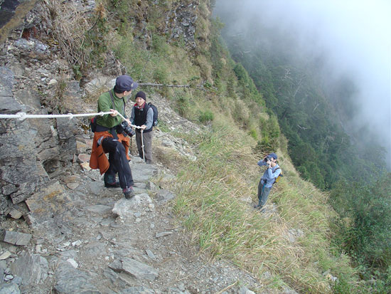 入山後不久遇到正在下山的登山客...其中有個年輕帥老外...