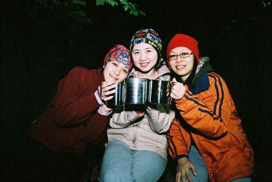 女生們自此下定決心要好好學作飯,一定要能在高山上炒菜,免得大夥兒一起被泡麵膩到OO又XX...Orz