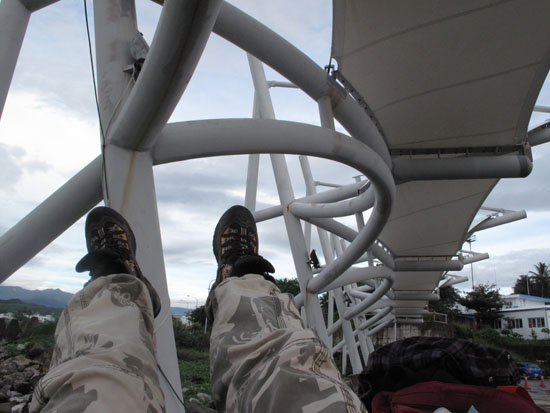 本來就認床認枕頭的我,坐著睡如坐針氈,加上走道隔壁那個阿伯一直打呼,光線 + 呼聲 + 搖晃 = 失眠