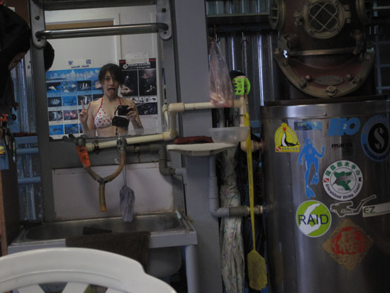 這裡好!! 潛回來可直接在門口洗裝備,洗澡間雖不多,但因為淡季全棟客人只有我們十個,一切都方便了!!