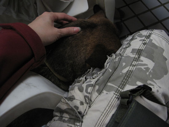 民宿的狗很黏人...摸一摸就掉一堆毛...