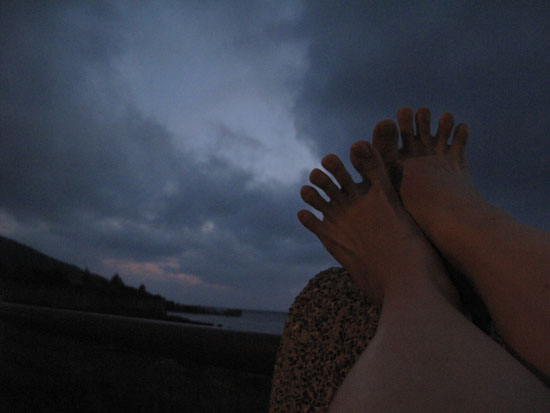 回到民宿吃了宵夜後部份朋友打麻將、部份在房間不知幹嘛~我坐在民宿前海岸邊的椅子上吹海風...