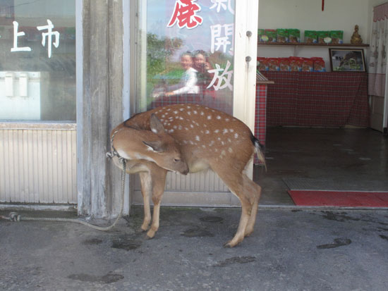 有家賣鹿肉乾的店會把眷養的鹿栓在店門口,回程時咱們特定尋找了一下...驚鴻一瞥再繼續趕路...XD