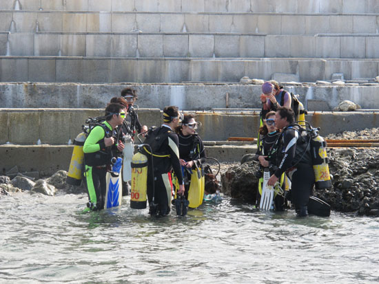 規規的氣瓶在下水前就發現有問題,原本開關轉到底後要回轉半圈,但轉不回來,導致下水後一直漏氣,結果氣不夠無法一氣呵成游向大香菇...囧...另外也有其他人氣不太夠,考量安全性~咱們連香菇的影子都沒看到就折返了...@@
