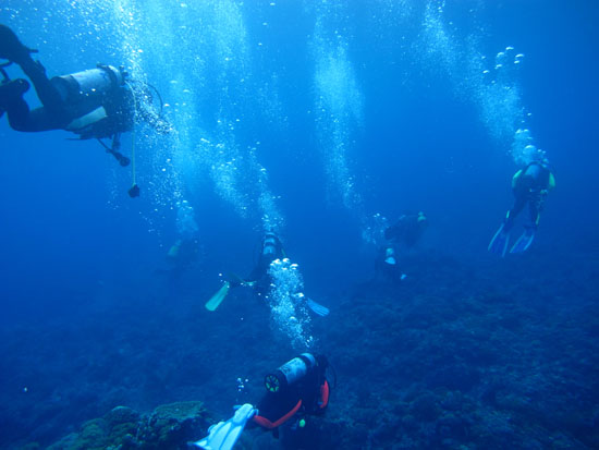 下水後看不到底,四周被藍色包圍,由於我是前幾個下來的,水下人很少,恐懼感瞬間竄遍腦門!!!