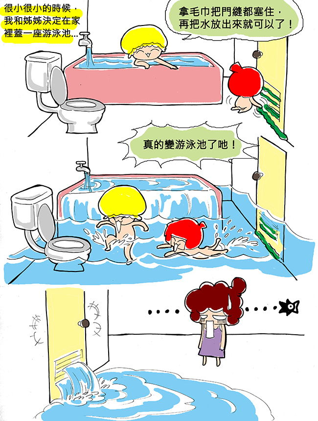 我跟姊姊當時真的沒想到水會溢出來...囧rz