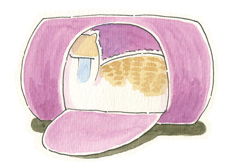 貓真是個躲藏高手,倉庫的床底下、衣櫥上,想得到的地方都小心 翼翼地翻找了一下,雖說不要打擾牠,但畢竟是陌生環境嘛!總怕牠一 個不小心受了傷可就不好了!找的時候儘量動作小、手腳輕。