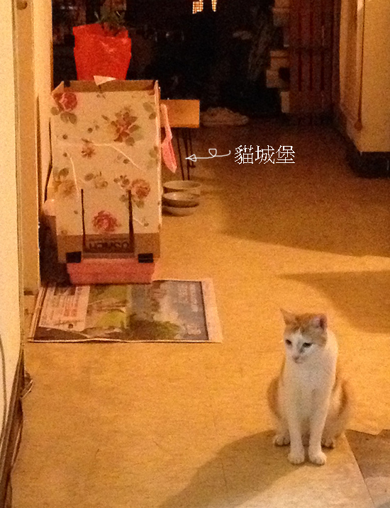 不久後,我們用鄉村風貓城堡跟唐妹妹家換了個超大加蓋貓砂盆,貓城堡被唐媽媽帶去山上廟裡讓其他的貓咪使用。超大加蓋貓砂盆總算解決你好上廁所很鱉的窘況!