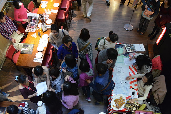 繳交入場費 --> 簽名 --> 投抽獎箱 --> 領喜餅 --> 入坐