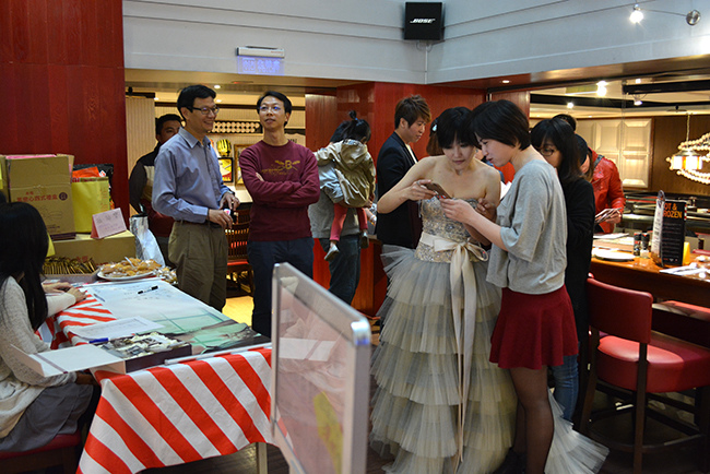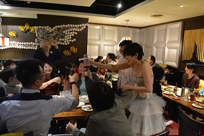 Fridays 當然沒有「新娘房」,雖然有說會提供讓我更衣的地方 (懷疑是員工休息室),但因為我不需要所以沒去看過,宴會當天我來很早,直接就在空無一人頗大間的廁所更衣了,之後就一直在會場轉轉轉招呼朋友。我的招待 Gina 在第一線幫忙帶位,遇到人數異動就呼叫我來調整座位,結果~大家都坐在規劃的區域,彈性座位也都用上,如此按照規劃真是出呼我意料之外的神奇呀!