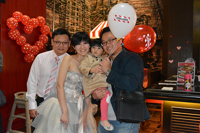 還有一個狀況是老公想讓小朋友們可以有汽球玩 (據悉 Fridays 有汽球),店經理一口答應在桌上裝飾 Fridays 的汽球,但當天並沒有看到汽球裝飾。老實說我也壓根忘了有要求汽球裝飾這件事,宴會開始很久後老公才想起來,但我們都覺得這是多要的沒有也無所謂,所以不在意,也沒再跟店經理反應。(新人自己都忘了,也難怪店家忘記 XD)