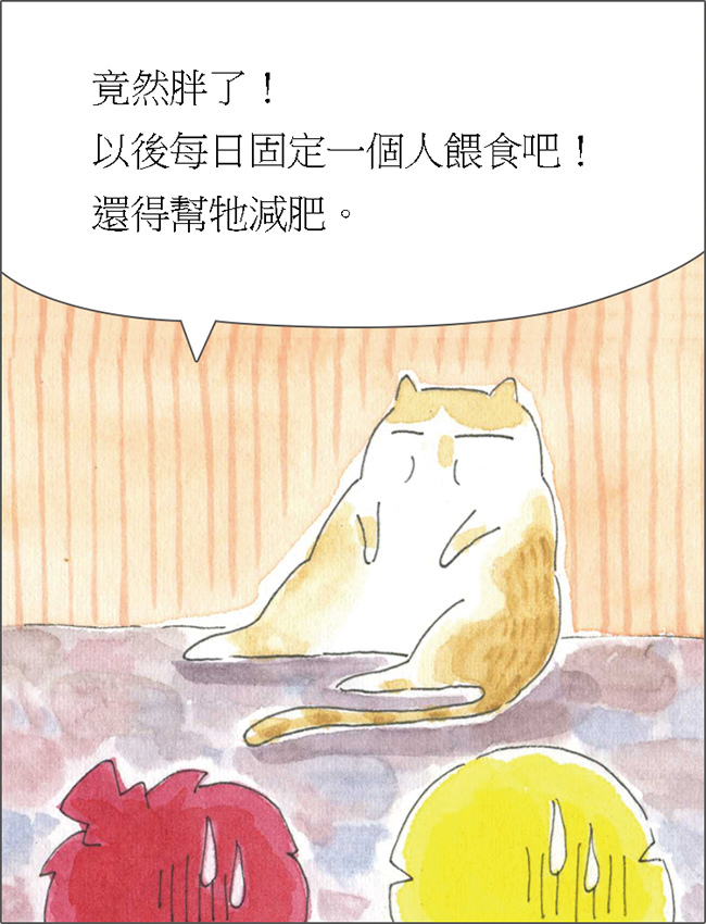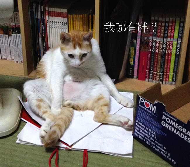 剛來我們家時你好 4 公斤左右,標準體重,玩玩具時橫衝直撞非常輕盈。不出半年胖成 6 公斤,連玩具都躺著玩了!貓一但肥胖會伴隨許多疾病,尤其泌尿方面,所以我和阿法趕緊改變餵食數量和頻率,企圖將你好的體重控制住,至少維持低於 6 公斤。不過,有時會不忍你好吃不飽,體重控制真是滿難的!