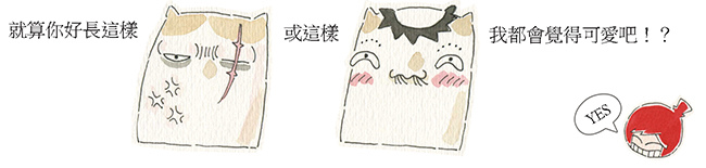 之前家裡曾養過一隻狗狗叫娜娜,連路人都會忍不住冒一句:「好醜的狗!」,但我們全家都覺得娜娜非常可愛,這就是所謂的「癩痢頭的兒子,是自己的好」吧!?你好可是常常被唐妹妹稱讚「帥」呢!我也覺得你好很帥,長得就是一副男生的臉啊!板著臉孔的時候很有氣魄呢!
