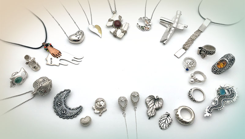 純銀黏土體驗課程以純銀項鍊墜子為主。純銀黏土進階課程須至少上過一堂體驗課程才可報名,除了純銀項鍊墜子,亦可選擇 DIY 純銀耳環或戒指。